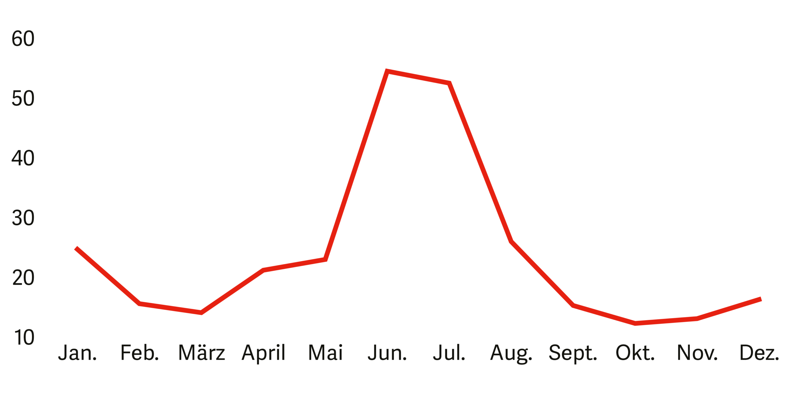 Die verschiedenen Behandlungsgründe zeichnen auch diese auffällige Kurve der Auslastung über den Jahresverlauf. Die Sommermonate mit den vielen Jungvögeln bringt die Station an ihre Kapazitätsgrenzen, während es im Frühling und im Herbst eher ruhig ist. Im Winter kommen viele Hungervögel in die Station und lassen die Kurve wieder leicht ansteigen. Bis Ende Januar wurden etwas mehr als 20 Hungervögel zu uns gebracht. Wir hoffen, dass diese Kurve dieses Jahr nicht allzu hoch ansteigt.
