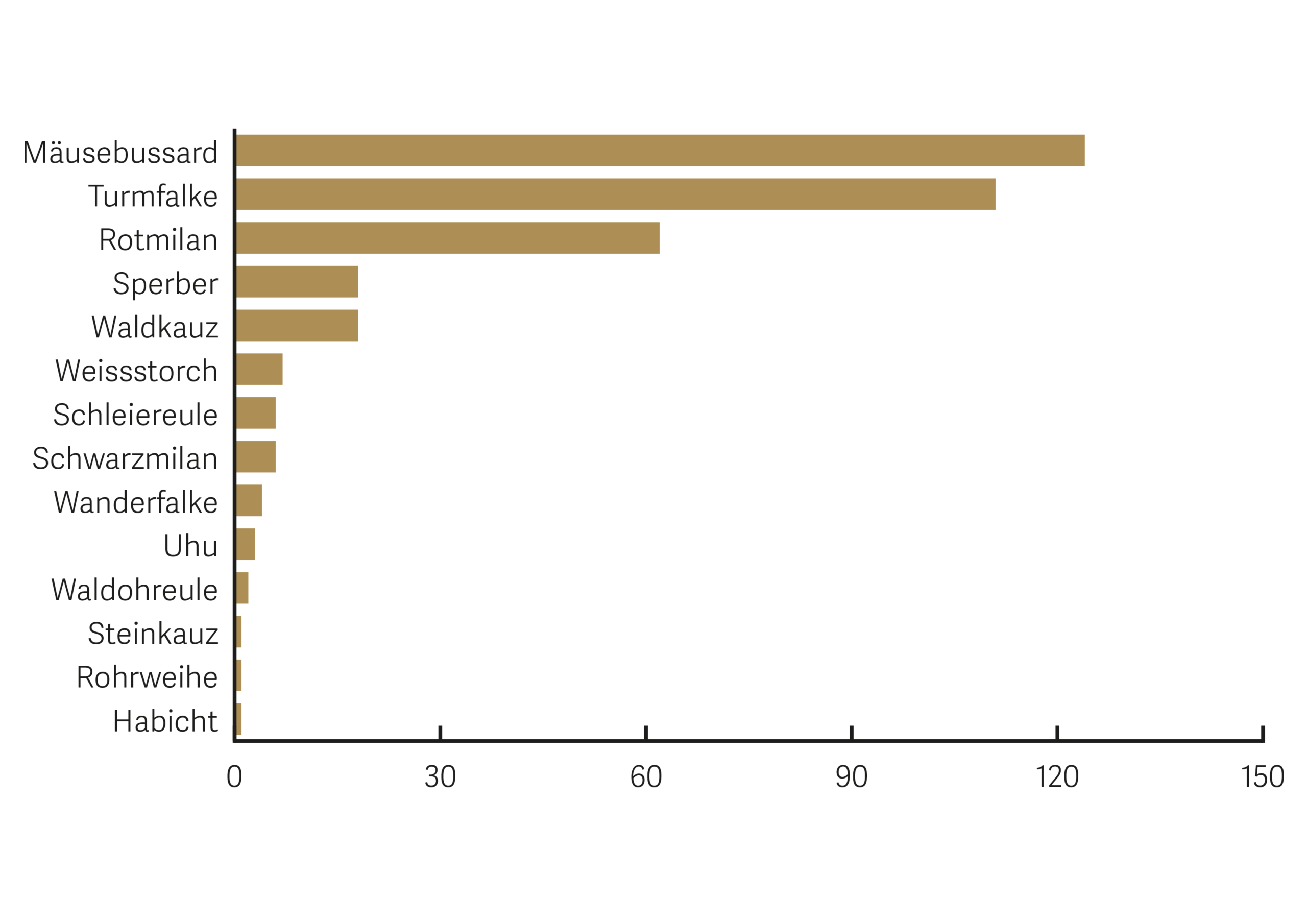 Im vergangenen Jahr wurden in der Greifvogelstation 364 Vögel gepflegt. Das ist der zweithöchste Wert in der fast 70-jährigen Geschichte der Station. Die 124 Mäusebussarde waren die häufigsten Patienten, gefolgt von 111 Turmfalken. Zusammen machten die beiden Arten zwei Drittel der behandelten Tiere aus. Auf der anderen Seite der Skala stehen Steinkauz, Rohrweihe und Habicht, von denen je nur ein Individuum 2025 in die Greifvogelstation gebracht wurde.