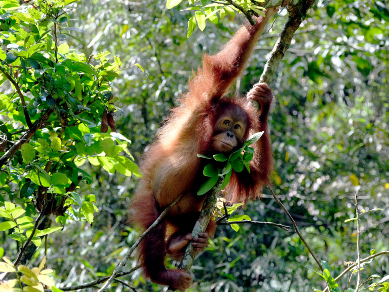 Im August 2022 wurde die junge Janet von der Forstbehörde aus einem Privathaushalt in einem Dorf in Nord-Aceh gerettet. Der Besitzer behauptete das wenige Monate alte Tier mit einer Bissverletzung durch einen Hund in seinem Garten gefunden zu haben. Daraufhin entschied er sich, sie zu behalten. Zwei Monate lang wurde Janet wie ein Haustier gehalten, mit Reis gefüttert, in Menschenkleidung gesteckt und auf YouTube zur Schau gestellt. Bei ihrer Ankunft in unserer SOCP-Auffangstation war sie etwa ein Jahr alt. Die Untersuchung durch unsere Tiermediziner:innen ergab einen Bruch am linken Arm, der in der Station erfolgreich behandelt wurde. Heute strotzt Janet vor Energie und Neugier. Zusammen mit anderen Orang-Utans lebt sie momentan im Sozialisierungsgehege, ein wichtiger Teil ihres Rehabilitationsprogramms.