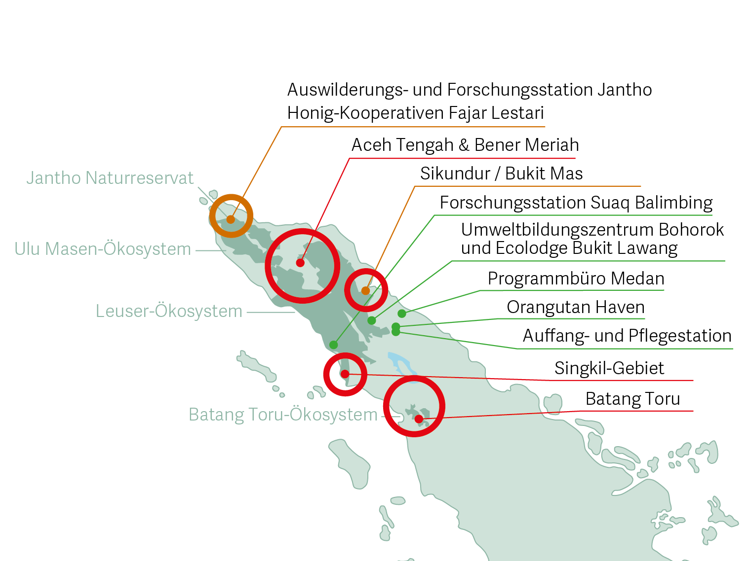 Diese Dörfer stehen in direktem Zusammenhang mit unseren Ökosystem-Schutzprojekten, da viele Ranger mit ihren Familien vor Ort leben und direkt mit der Bevölkerung zusammenarbeiten, um den Regenwald und die darin lebenden Tiere, allen voran Orang-Utans, zu schützen. Mittelfristig ist absehbar, dass grössere Wiederaufbauarbeiten notwendig sein werden, um die wirkungsvollen Projekte mit den Partnerorganisationen in den betroffenen Gebieten fortzusetzen und den Schutz der bedrohten Ökosysteme in den betroffenen Gebieten sicherzustellen.